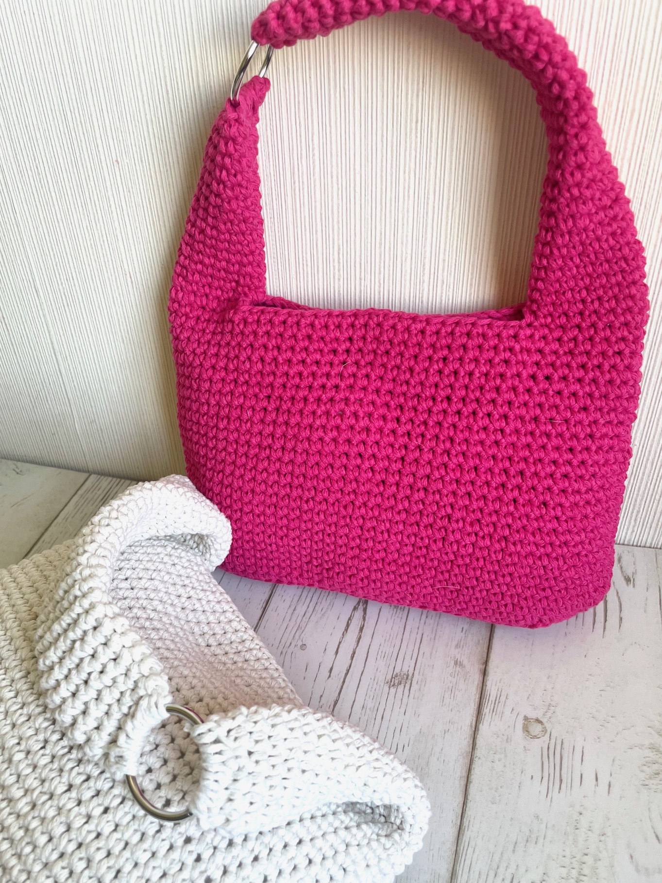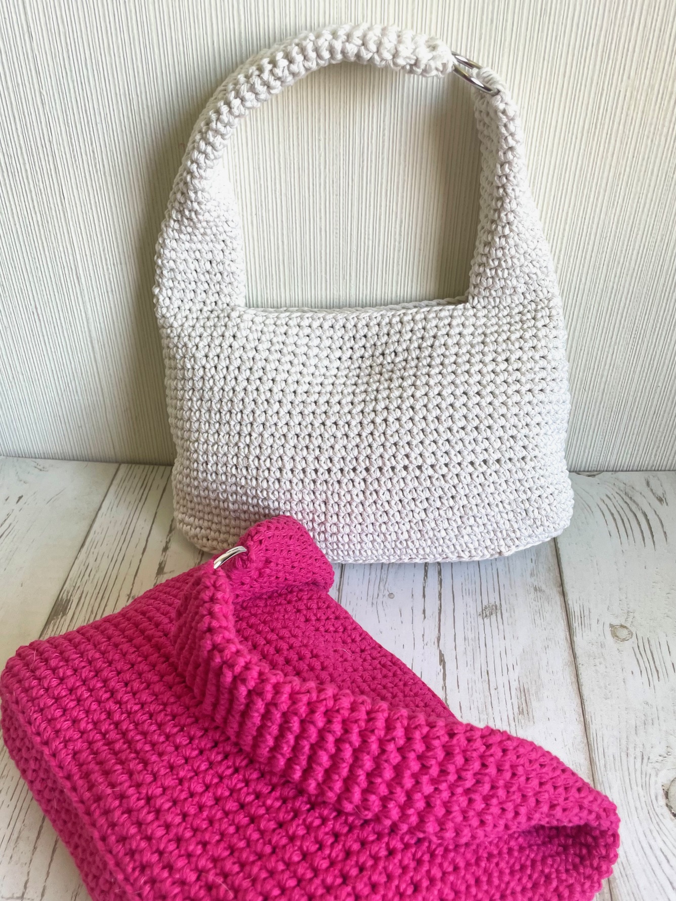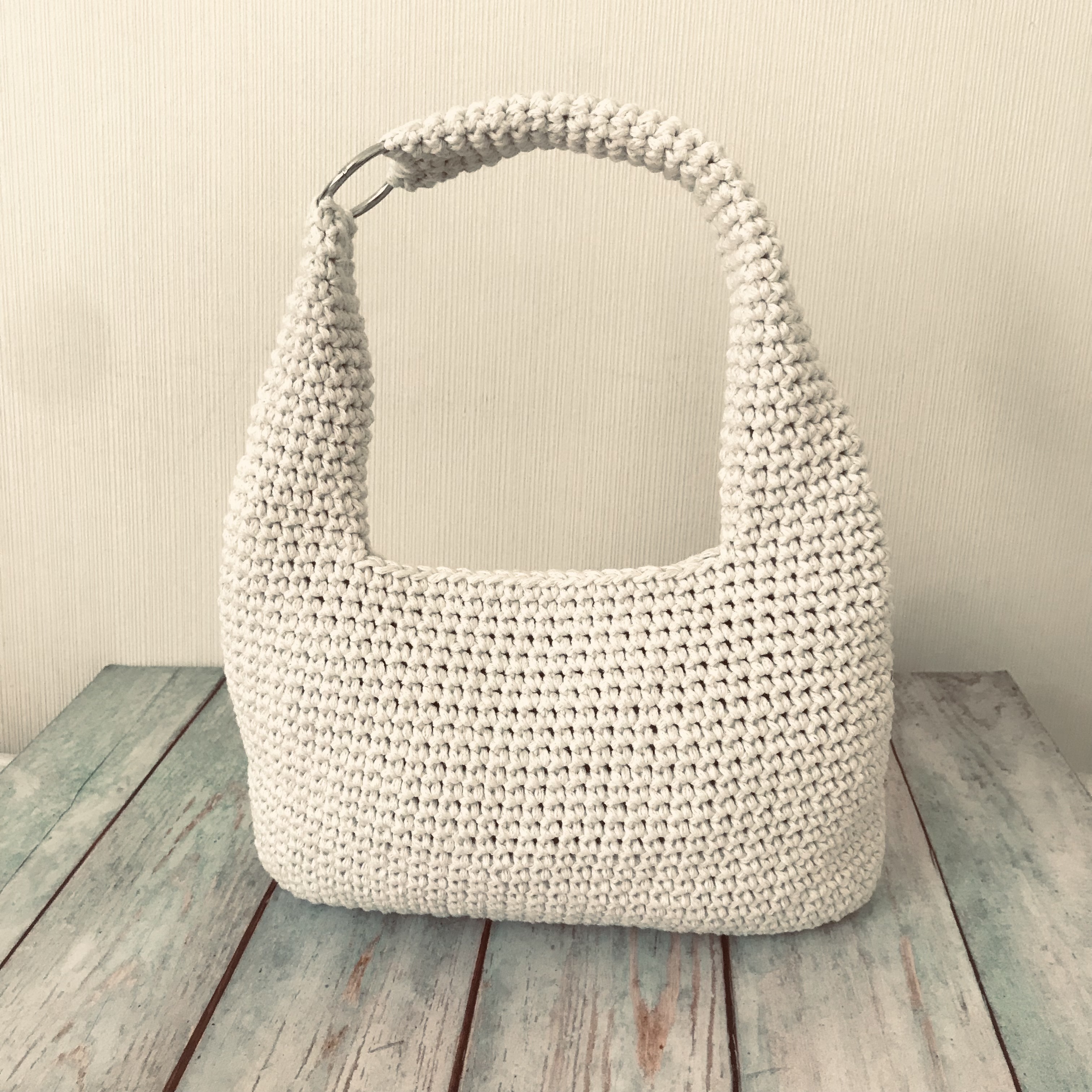 Bolso pequeño tejido a crochet en algodón trenzado. Ideal para una salida informal de noche o evento. No lleva forro porque el tejido queda muy tupido y no lo necesita. Broche imantado.