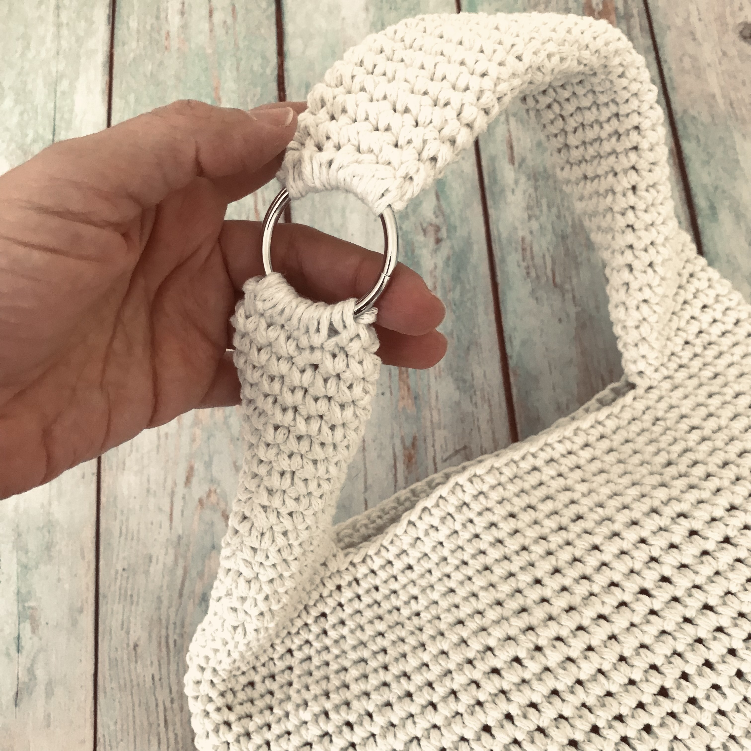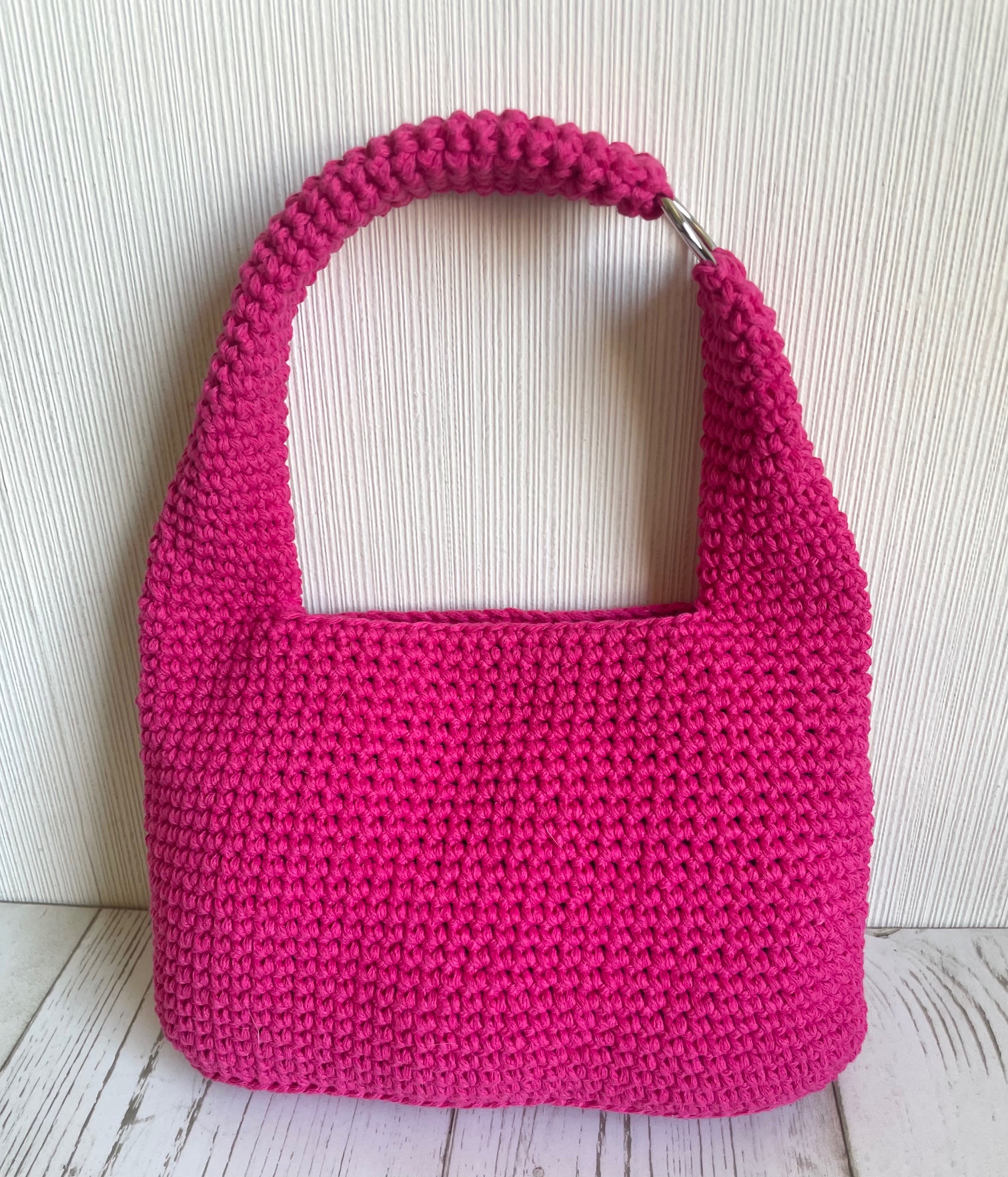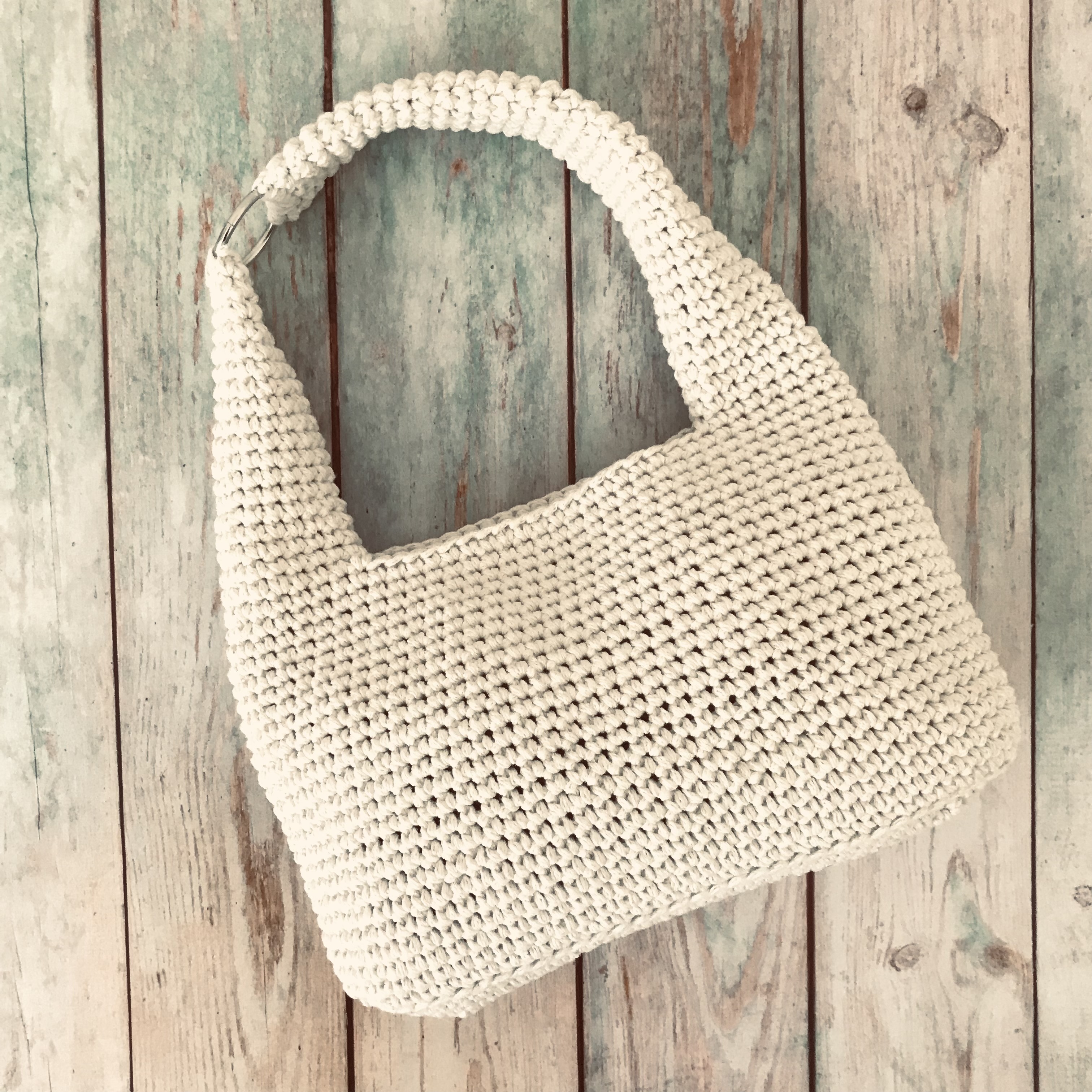Bolso pequeño tejido a crochet en algodón trenzado. Ideal para una salida informal de noche o evento. No lleva forro porque el tejido queda muy tupido y no lo necesita. Broche imantado.