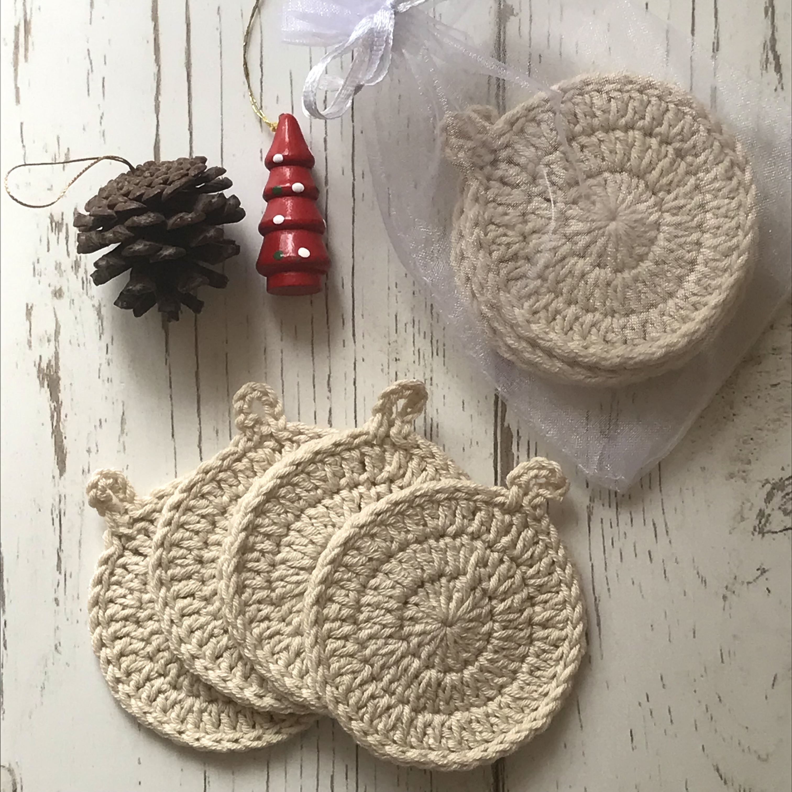 Pétalos desmaquillantes reutilizables, tejidos a crochet en algodón premium en color crudo. Cada set es de 4 pétalos de 6 cm de diámetro.